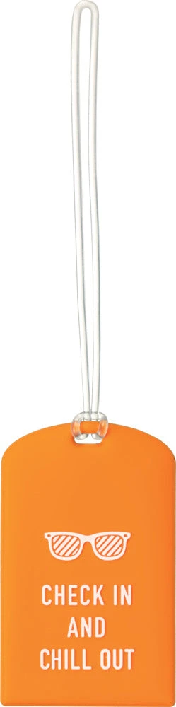«Check in and chill out» med disse bagasjertaggene, som gjør det enkelt å finne igjen kofferten på rullebåndet. Innsiden skjuler en adresselapp for personlig kontaktinformasjon.