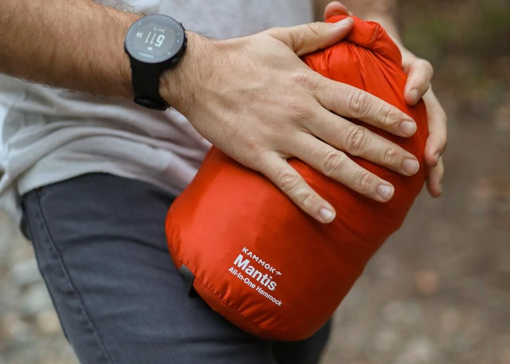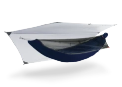 With a breathable hammock body, integrated insect net, and featherlight rainfly, the Mantis all-in-one hammock tent lightens your pack and takes your camping experience off the ground. The Mantis all-in-one hammock system is smaller than your sleeping bag and lighter than a 1-person tent offering a lightweight respite for hikers on trail.