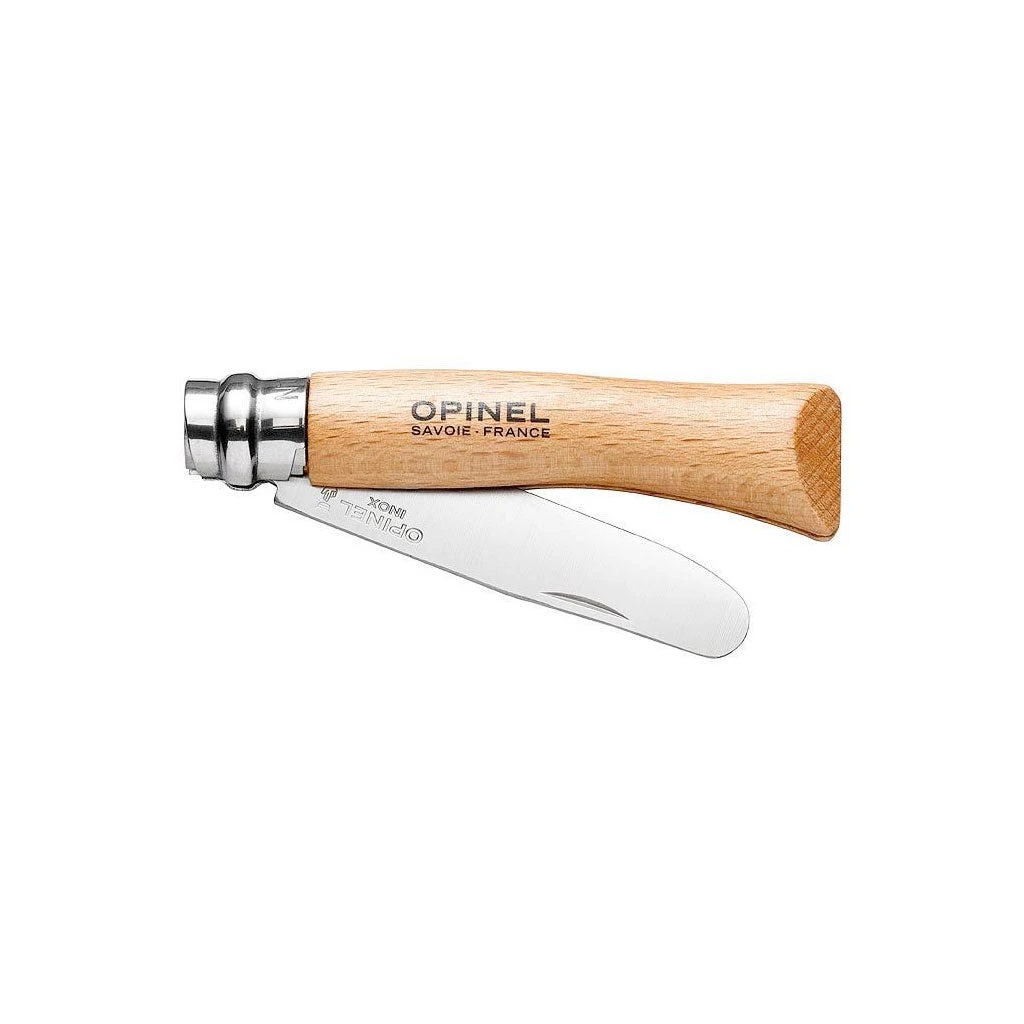 Bladlengden på 8 cm egner seg spesielt godt til kutting av grønnsaker og urter til turkjøkken, smøre på brødskiva, til å spikke kvister, eller til å fikse andre små oppgaver på tur. Bladet er laget i Rustfritt Stål med litt chromium, som er hard og lett å holde skarpt, og som også tåler vann. Spissen er butt på denne, men eggen er likevel like skarp som N°07-modellen som denne utgaven er basert på. I likhet med alle Opinel-kniver har denne også den gjenkjennelige sikkerhetsmekanismen som låser knivbladet i oppreist posisjon slik at man ikke risikerer at bladet foldes inn når kniven er i bruk.