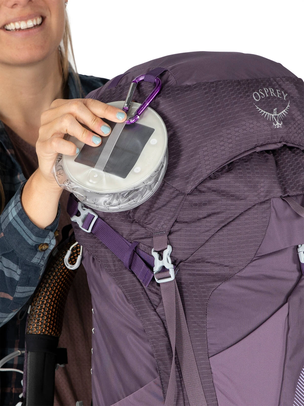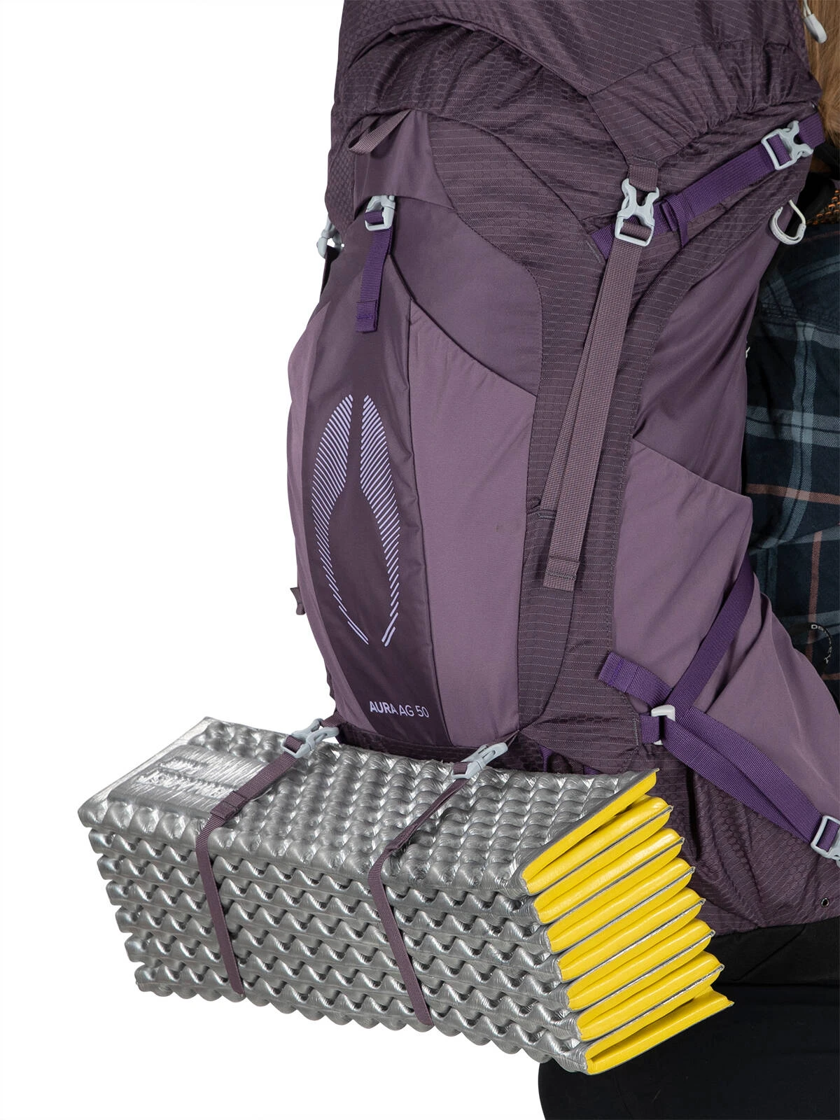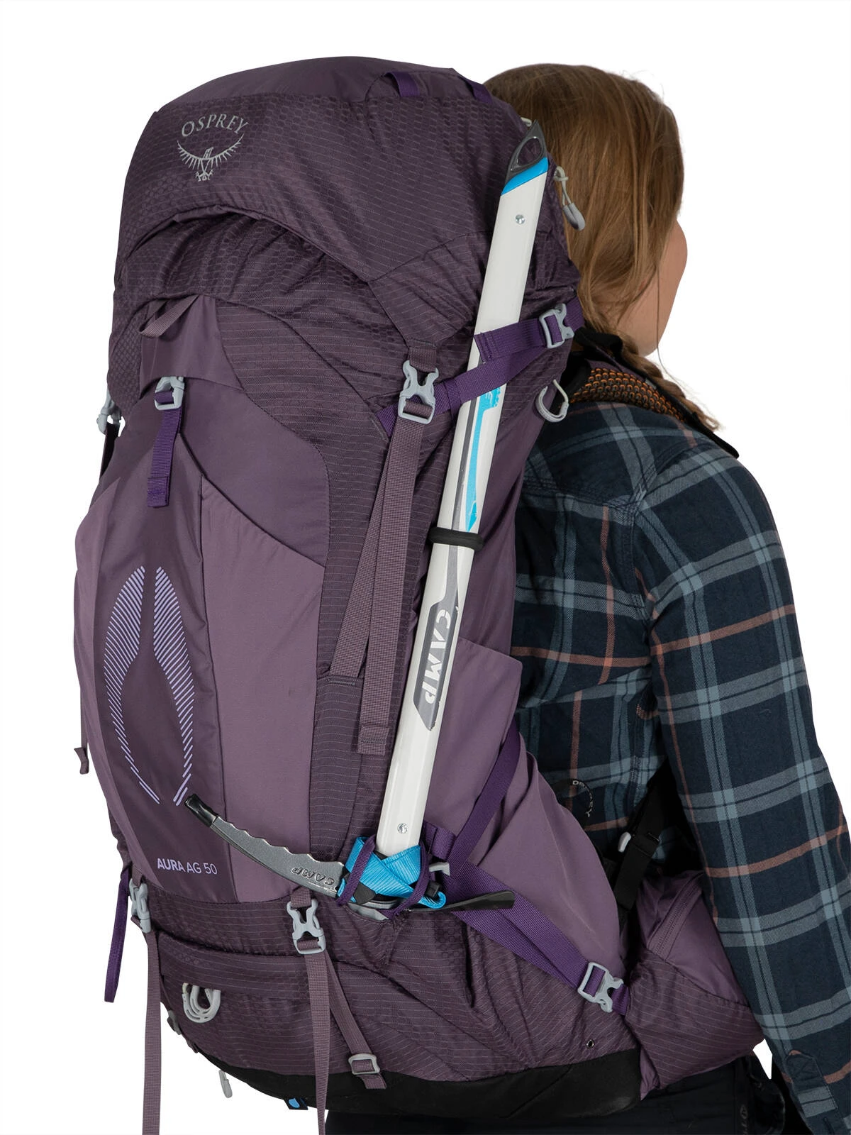 For overnattingsturer over flere dager der oppakningen er lettere, komfort og ventilasjon har høy prioritet og kvinnetilpasset passform er ideelt, velger fjellfolk Aura AG 50. Ryggsystemet AntiGravity har en passform som gir deg følelsen av at tyngdekraften oppheves. Det omfavner ryggen og hoftene dine sømløst med oppspent 3D-formet netting på en måte som gjør at du fort glemmer hvor mye du pakket. Alt utstyret ditt er der fremdeles – det er bare ryggsystemet som er så godt. Brukervennlige sidelommer i elastisk netting, Stow-on-the-Go festesystem for gåstaver, integrert regntrekk og FlapJacket-topp for bruk uten lokk gjør Aura AG 50 til en kompromissløs stor tursekk for kvinner. Laget av 100 % resirkulerte materialer.