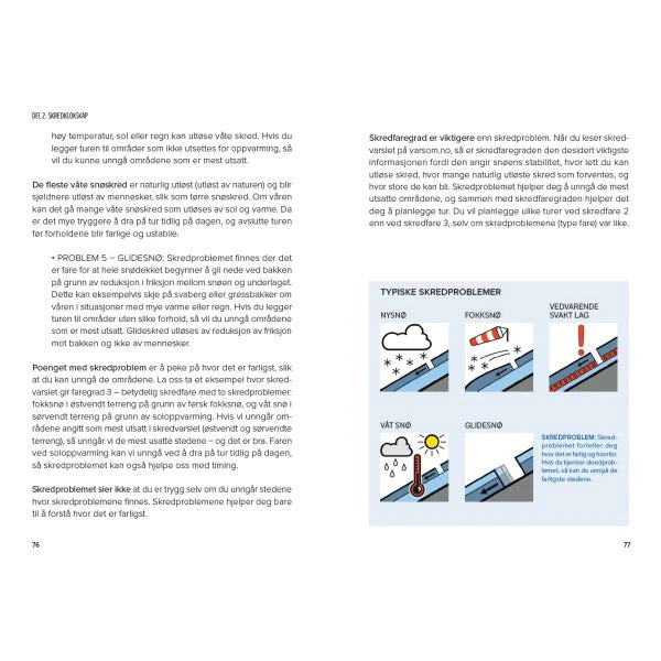 Snøskred på 1-2-3 er kortfattet og systematisk og gjør det lett for deg å forstå snøskred. I boka lærer du hva som forårsaker snøskred, hvor du er trygg på skredfarlige dager, hvordan du bruker skredvarslingen på varsom.no til å planlegge og gjennomføre fine turer og om nødvendig utstyr og metoder for kameratredning.